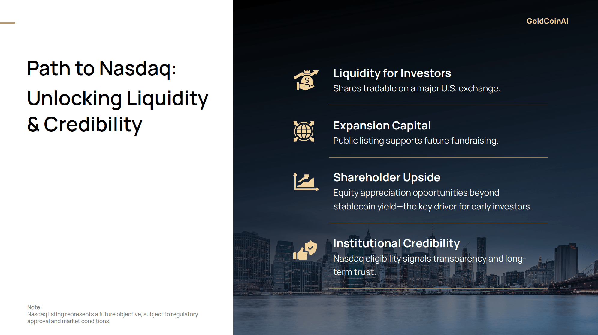 Gold Coin AI is built specifically for this moment—U.S.-domiciled, regulation-ready, and engineered for institutional trust and long-term growth. This is a first-mover advantage in a market about to explode.