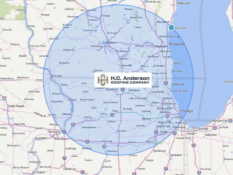 Historically, you can find their work on display across Illinois and Wisconsin. Their warehouse in Rockton puts us within 30 miles of Rockford, Belvidere, Beloit, and Janesville. They also serve Northwest Chicago and Elgin, as well as Freeport, Rochelle, and Dekalb. However, this year, H.C. Anderson Roofing has expanded their reach to a 350-mile radius and plans to expand nationwide.